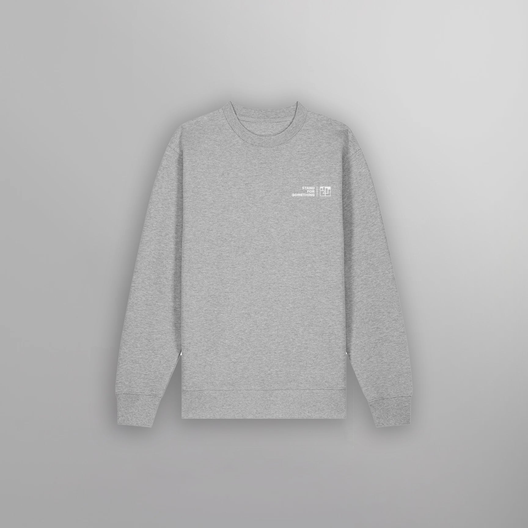 The Stand for Something Universal collection crewneck is crafted from 100% organic cotton, with a modern, medium fit, deeper collar, and cuff ribs.