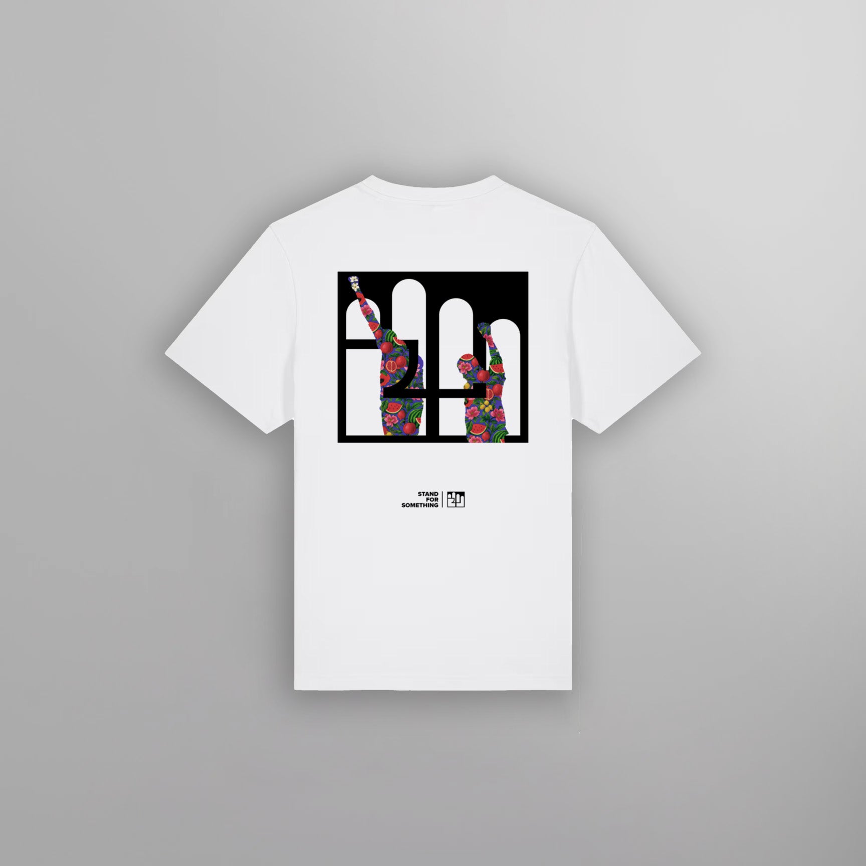 THE UNIVERSAL FIST SHORT SLEEVE TEE EMBODIES FEARLESSNESS, STANDING FOR WHAT MATTERS, AND NEVER LETTING YOUR VOICE BE SILENCED. MADE FROM 100% ORGANIC COTTON, IT FEATURES THE ICONIC STAND FOR SOMETHING FIST LOGO WITH A SILHOUETTE INSPIRED BY THE 1968 OLYMPICS BLACK POWER SALUTE PRINTED PROMINENTLY ON THE BACK. A UNIVERSAL SYMBOL OF COURAGE AND STANDING FOR WHAT'S RIGHT.